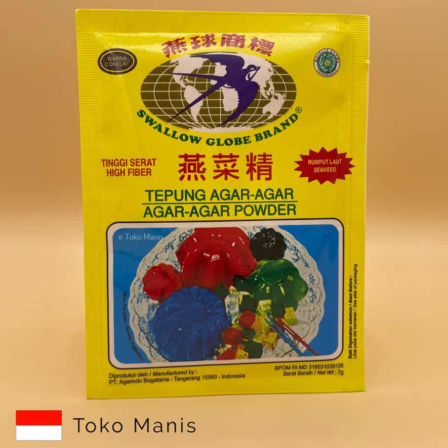Agar agar swallow globe brand powder high in fiber that is obtained from seeweed.